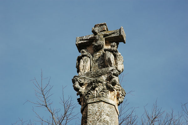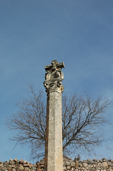Consta de una basa en graderío de tres pisos, sobre la que se instala un pie circular que soporta una larga columna poligonal con remate de capitel.